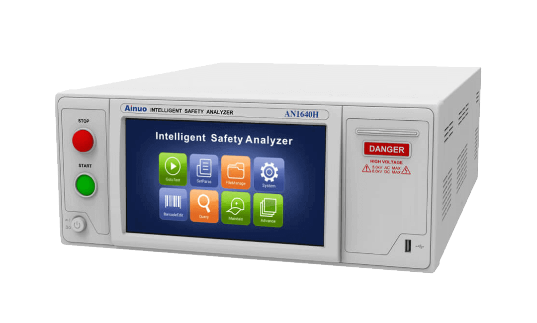 The AN1640H(F) Series Intelligent Safety Analyzer features complete functions, high precision, high speed, automation, informatization, and intelligent, meeting the comprehensive testing needs of fast cycle, multi variety, and informatization safety performance of single-phase and three-phase household appliances, charging piles, and similar production lines.
