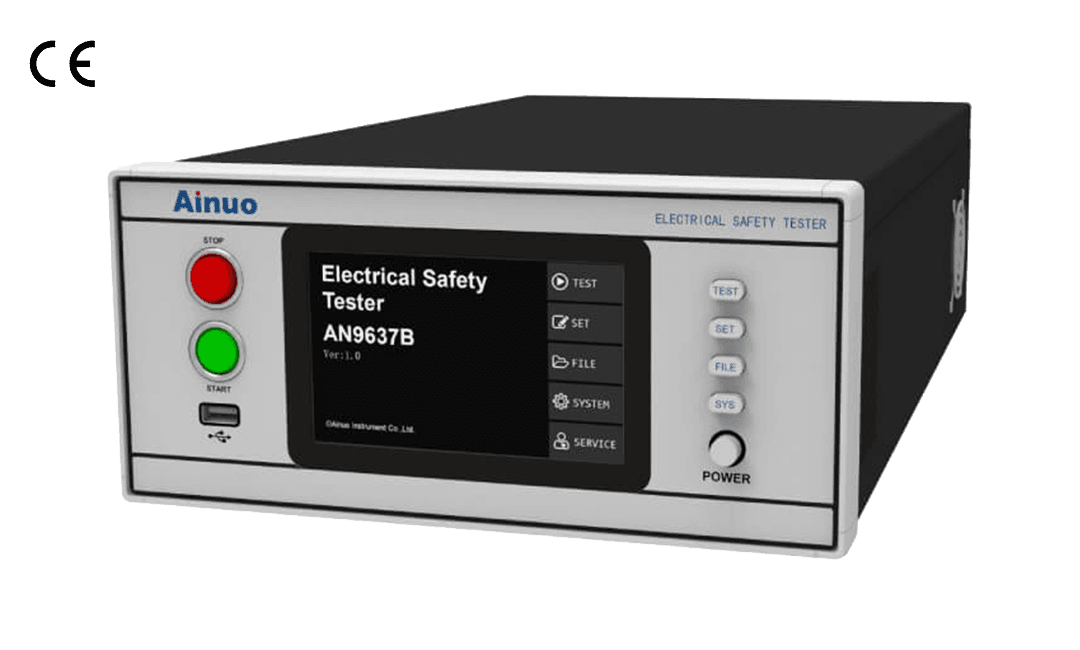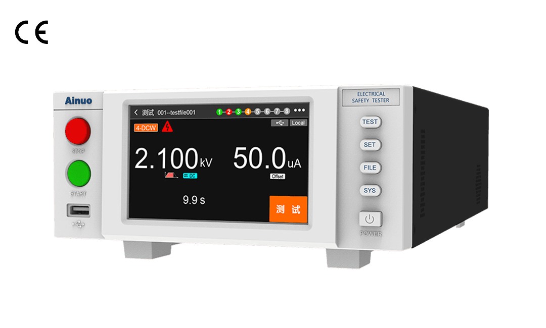 Ainuo AN96XXB(F) Series electrical safety tester has a multi-function combination including AC withstand voltage, DC withstand voltage, insulation resistance, and AC grounding, as well as auxiliary functions such as arc detection, open and short circuit detection, and low-pass filtering, and has a variety of interfaces including RS232, RS485, PLC, LAN(optional), and USB(optional).